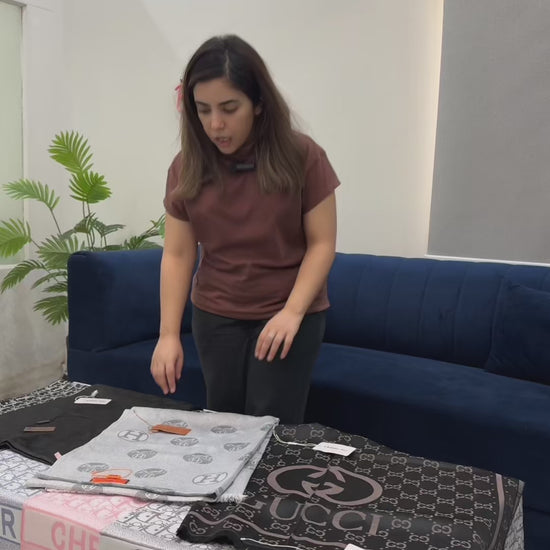 Elevate your style with our branded Cashmere Scarf, a timeless accessory that adds sophistication to any outfit.