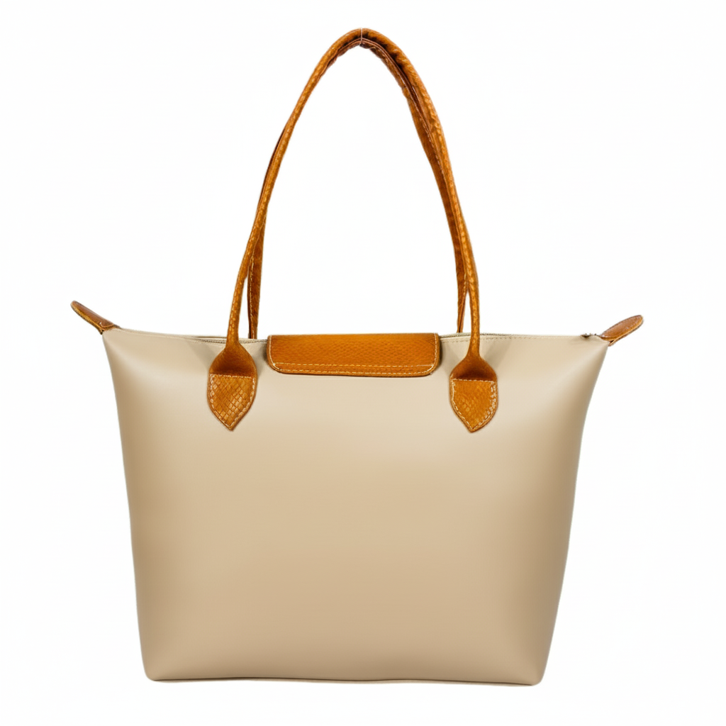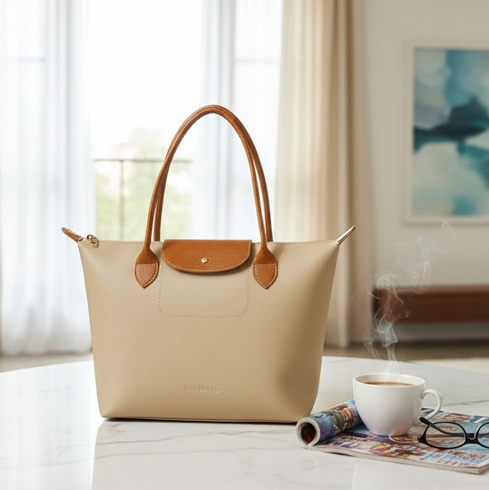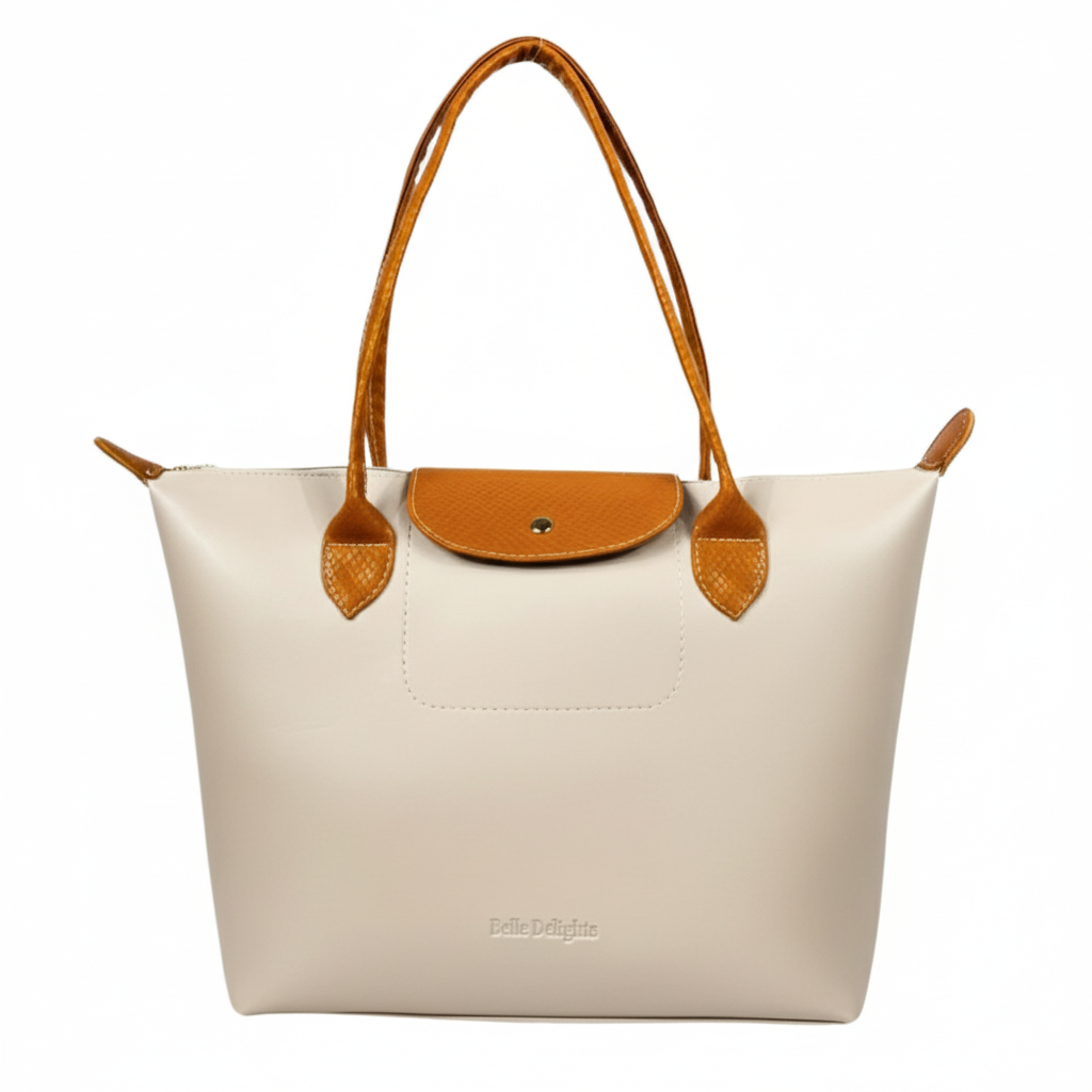 This iconic The Beige Belle LongChamp handbag is lightweight and features classic, clean lines with a feminine touch. It is crafted from Premium PU leather with contrast leather trims and designed for everyday elegance. The bag includes two sleek leather shoulder straps, allowing it to be carried comfortably by hand or on the shoulder. Reaching cult status across all continents, the LongChamp shoulder bag effortlessly fuses luxury and practicality in a single sweep—exceptionally lightweight and easy to carry.