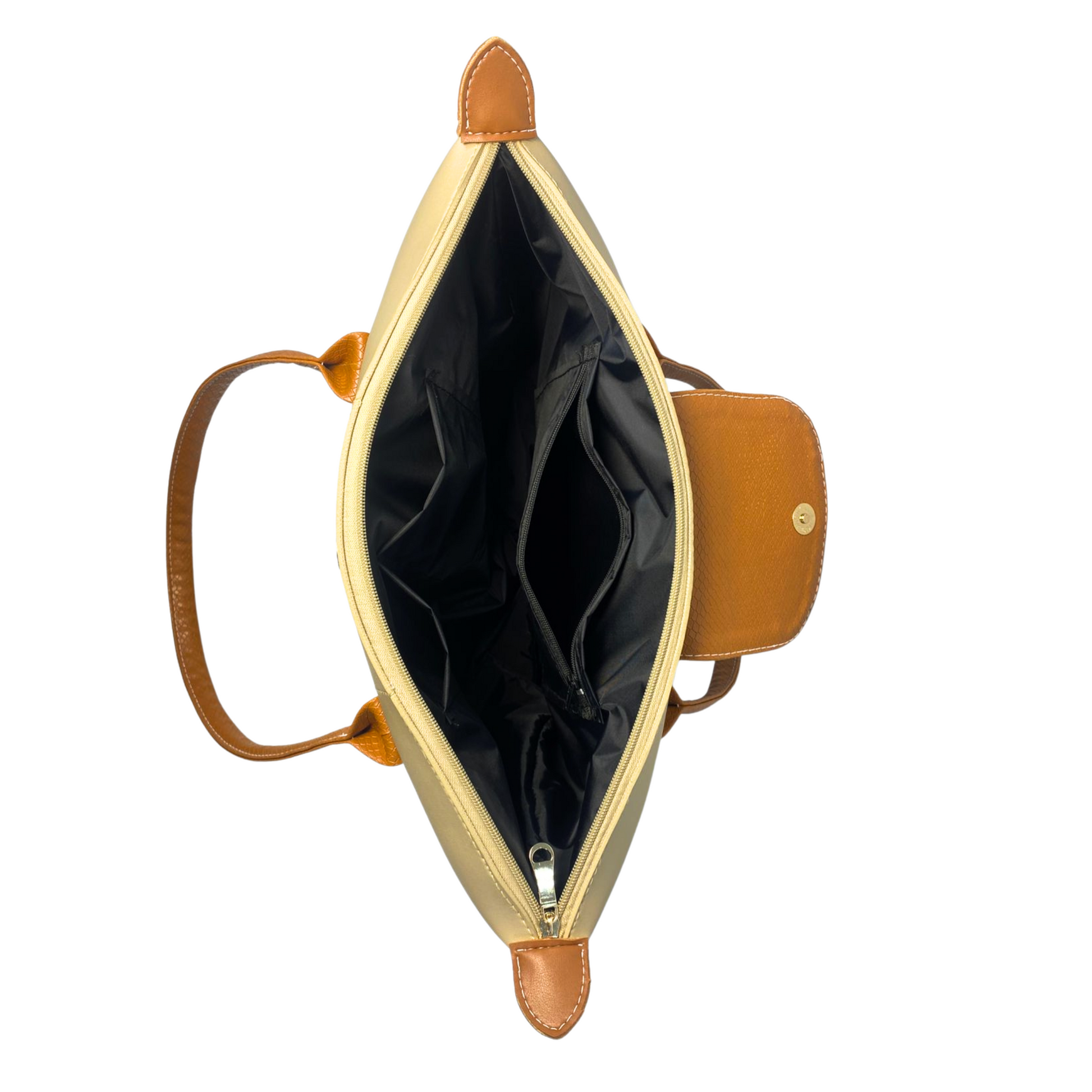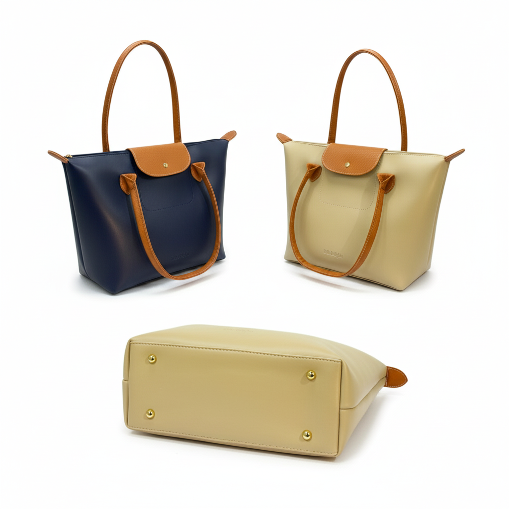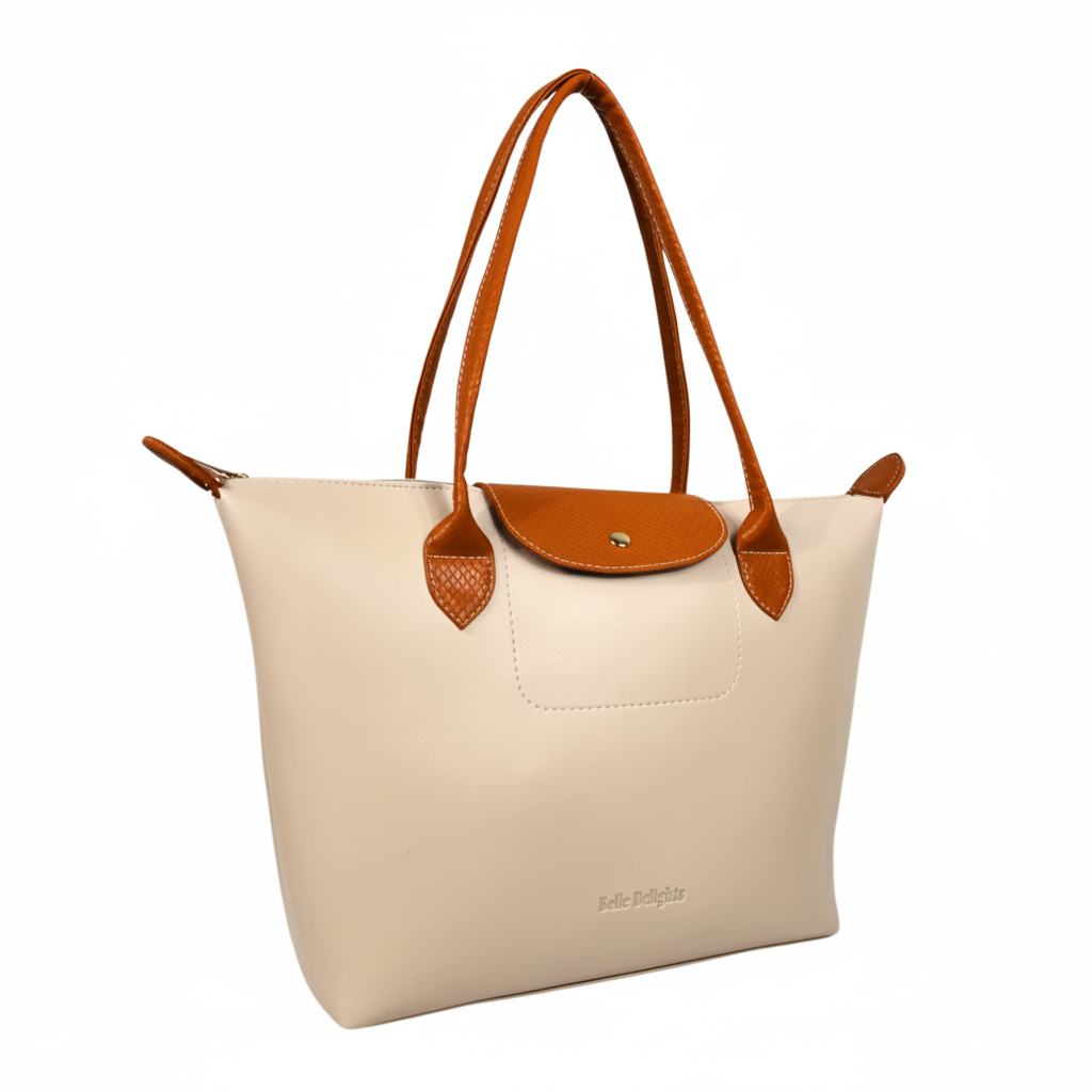 This iconic The Beige Belle LongChamp handbag is lightweight and features classic, clean lines with a feminine touch. It is crafted from Premium PU leather with contrast leather trims and designed for everyday elegance. The bag includes two sleek leather shoulder straps, allowing it to be carried comfortably by hand or on the shoulder. Reaching cult status across all continents, the LongChamp shoulder bag effortlessly fuses luxury and practicality in a single sweep—exceptionally lightweight and easy to carry.